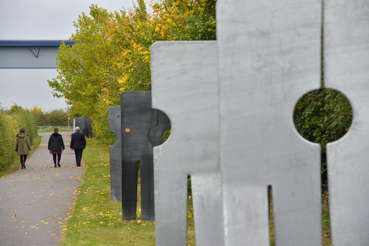 Originally commissioned by Derbyshire County Council in 2012, the Walking Together memorial forms a trail which stretches between the village of Duckmanton, near Chesterfield, to Markham Vale, close to where the former pithead of Markham Colliery once stood.