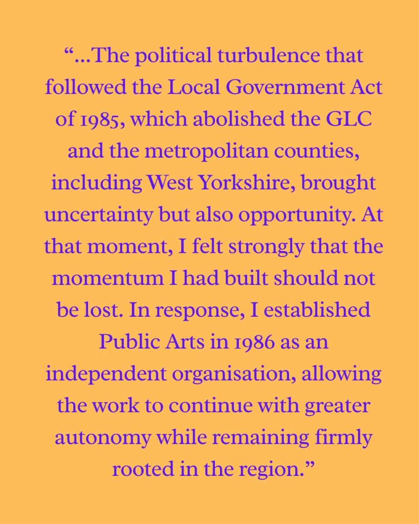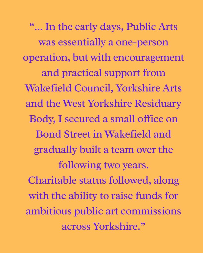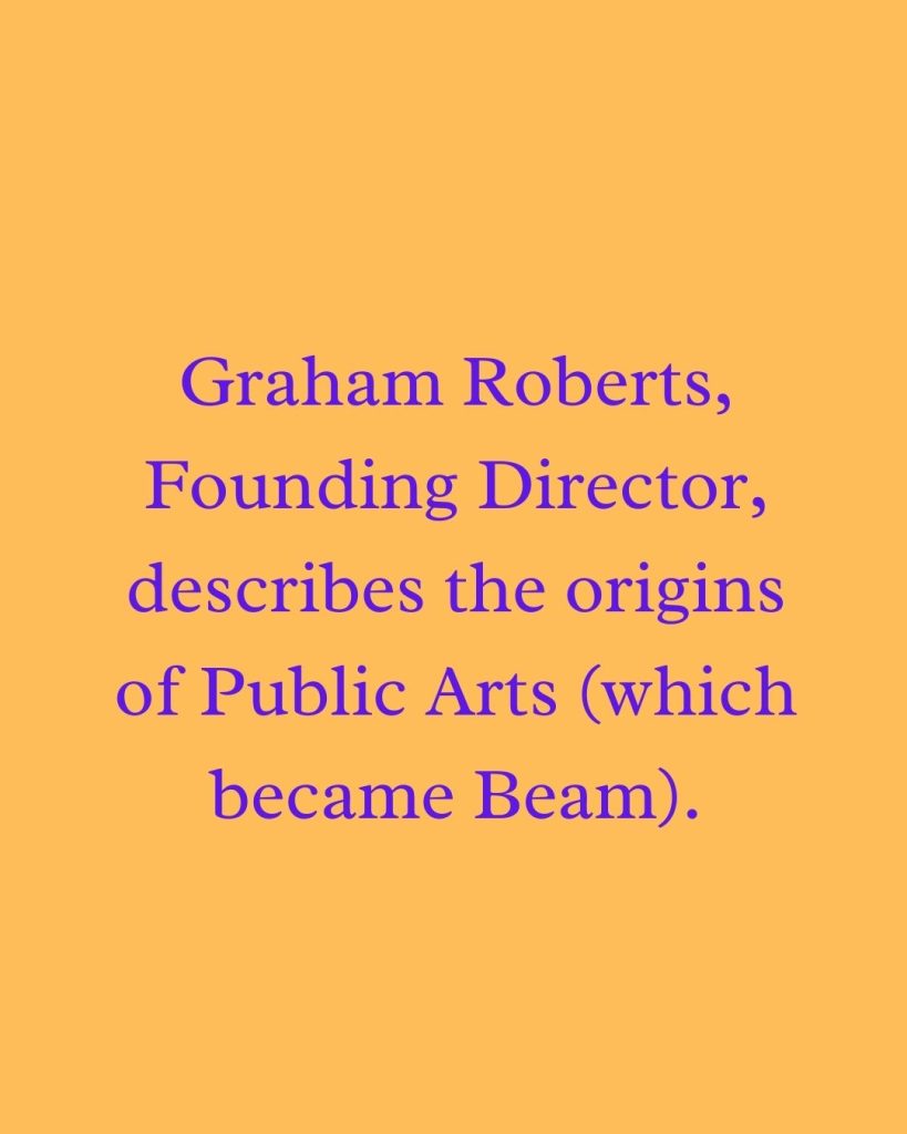 Beam began life as Public Arts, founded in Wakefield in 1986 as an arts charity with big ideas about public space, place, and community. Our forty year archive captures how public art has evolved over the decades — from early commissioning and funding challenges, to shifting ideas around placemaking, technology, and community-led approaches.